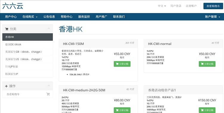 六六云(666clouds)是一家主打“原生/住宅IP”的国人VPS商家,核心卖点在于提供高纯净度的IP,专门用于跨境电商(TikTok)运营和流媒体解锁,对国内用户支付友好。六六云机房覆盖香港、韩国、日本、美国、英国、德国等,支持支付宝,有中文面板和工单系统,购买门槛低。